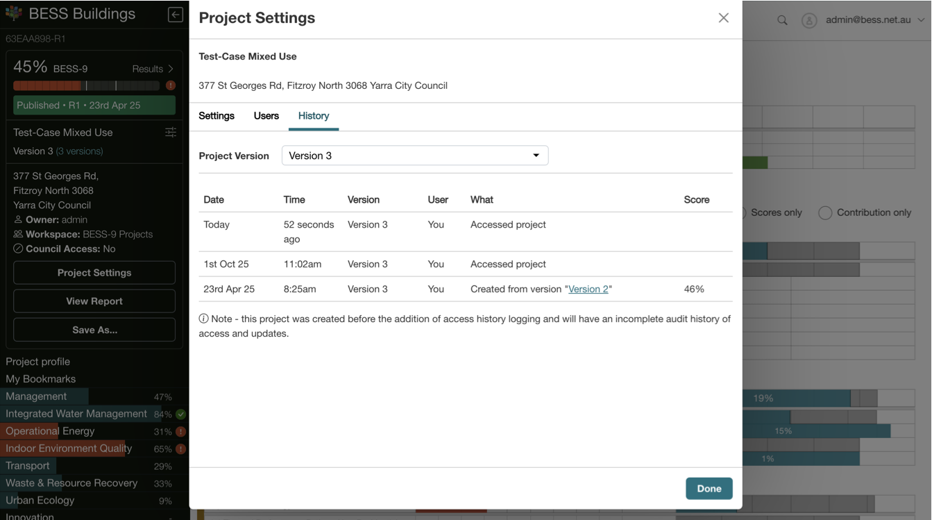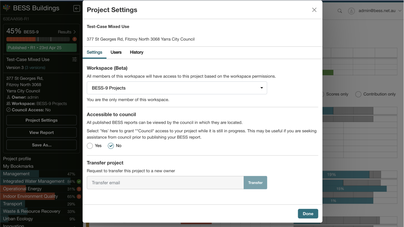 BESS 2.2 introduces Project Collaboration & Workspaces.