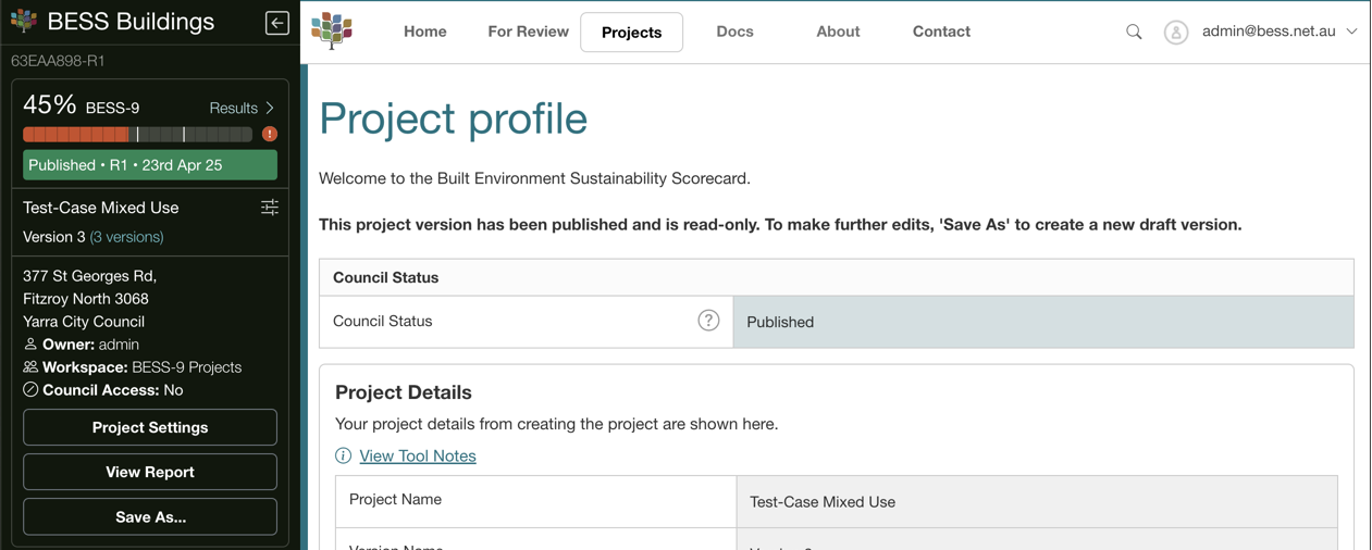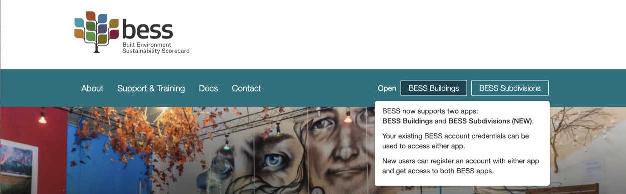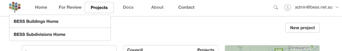 BESS Users will have access to both BESS Buildings and BESS Subdivisions. New users can register via either application and switch between them at any stage via the logo to the far left of the navigation bar.