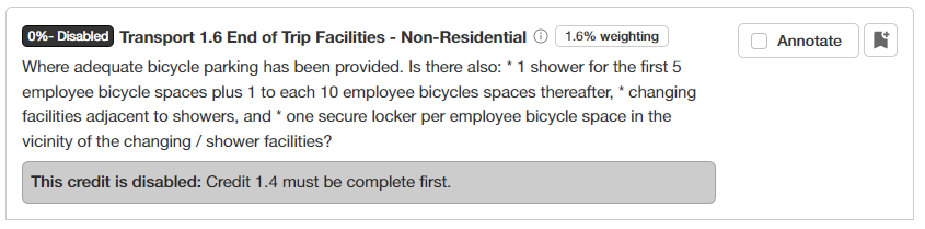 Disabled credits will inform the user what project input needs to be changed to enable it.