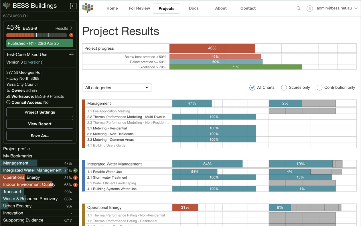 The aim is to provide users with a single view of how their project is performing and what credits can be further targeted to improve their category and overall project score.